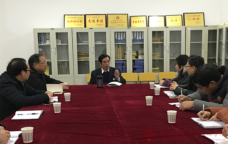 12月28日下午,校党委吴廷伟书记到建筑工程学院调研。吴书记结合“四风”问题,如形式主义、官僚主义,以及基层党组织建设、师生思想政治教育、师生对学校改革发展中认为存在的问题等听取了大家的意见。他希望大家坚定信心,凝聚力量,有序推进学校迎评促建和转型发展。