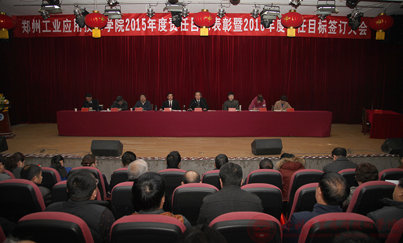 会上,常务副校长冯建业教授宣读了《关于表彰2015年度责任目标管理先进单位的决定》。伴随着欢快的音乐,出席校领导依次为21个获奖单位代表颁奖。校长助理、教务处处长郝东山教授,建筑工程学院常务副院长李文霞副教授分别作了代表发言。