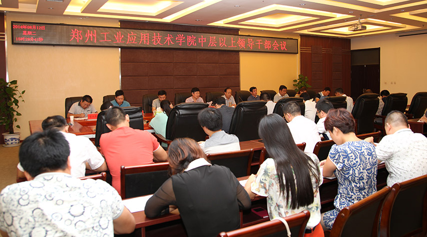 8月12日下午,我校在行政管理中心2楼会议室召开了新学期全体中层以上领导干部会议。校党政领导班子成员出席会议,全校中层以上领导干部参加了会议。会议由常务副校长冯建业教授主持。