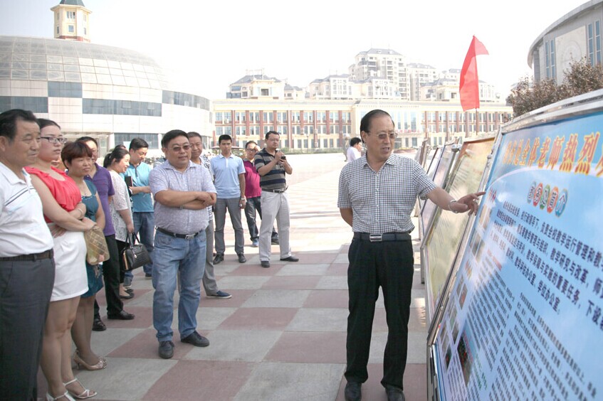在检查指导迎新展板时,每到一处,校长赵国运教授都认真审阅,详细询问有关展板内容情况,在看到耳目一新的内容和设计时,不住的点头称赞。当看到一些展板的内容不完善时,赵校长还给予了亲切的指导,并强调,一定要让新生通过展板,了解服务单位的服务项目和服务特点,了解各教学单位的师资配备、专业特色和就业前景等。如在看到大学生心理健康教育情况介绍后,赵校长当场指出,一定要高度重视大学生心理健康教育工作,高度关注大学生心理问题,进一步加大建设力度,学校将给予全力支持。