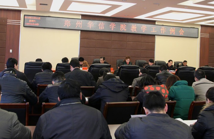 会上,教务处常务副处长阎喜亮传达了《郑州华信学院2013-2014学年第二学期教学工作要点》。教学督导办主任刘学忠通报了近期教学督导工作的重点,对发挥院(系部)督导工作积极性和试卷复查工作进行了安排。