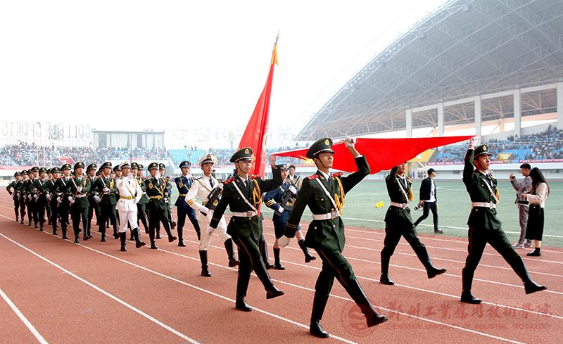 伴随着激昂的乐曲,飒爽英姿的国旗护卫队,守护着国旗步入会场,花束队、彩旗方队、裁判员代表队、各院(系部)运动员代表队迈着矫健的步伐依次入场,展示了郑工学院师生团结进取、昂扬向上的精神风貌。
