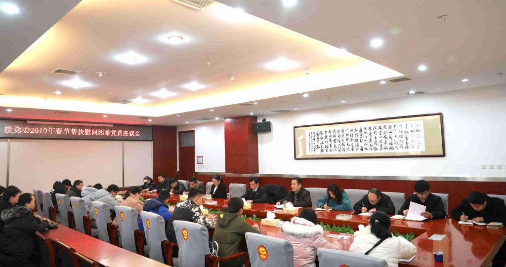 新时代万象更新,新风尚倍加珍惜。2019年1月12日下午,校党委在行政管理中心6楼会议室召开了2019年春节帮扶慰问困难党员座谈会。校党委书记吴廷伟同志、党委组织部部长赵祚良同志、党委宣传部部长李娟娟同志及相关基层党组织书记、受助困难党员参加了座谈会。