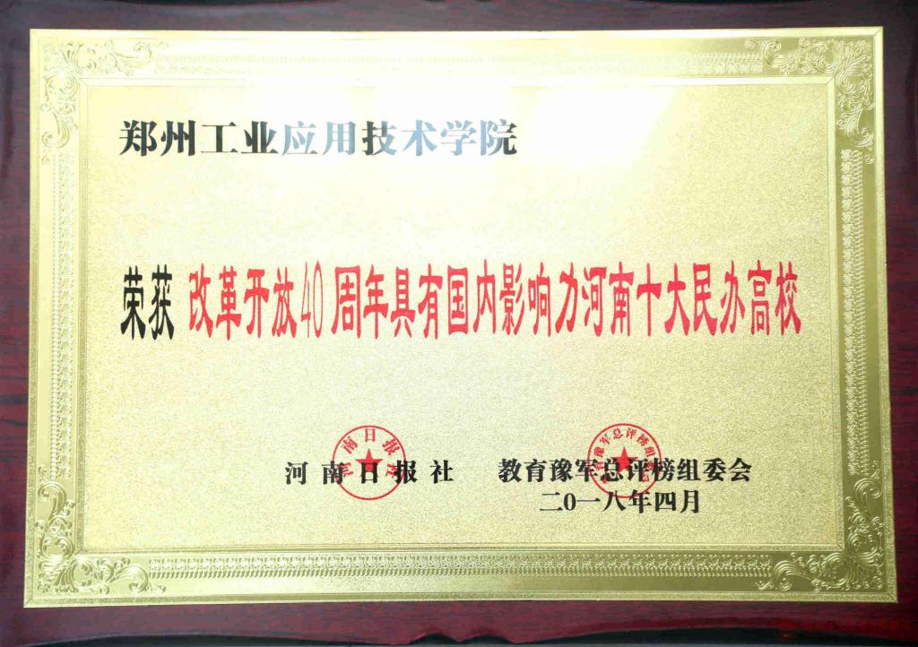 (文/郭敬源)近期,郑州工业应用技术学院捷报频传,受到社会媒体广泛好评。学校先后被评为“2018年度教育行业领军品牌”“2018年度就业竞争力民办高校”“改革开放40年优秀民办高校”“2018年度品牌实力民办高校”等荣誉称号。