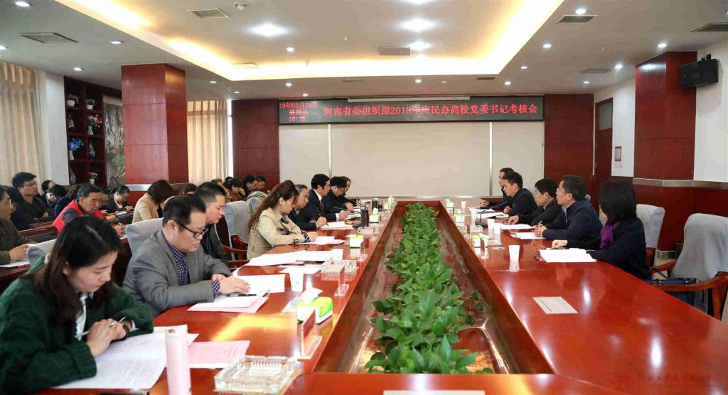(文/王建峰 图/张倖华)根据《省管高校领导班子和省管干部2018年度综合考核工作实施方案》要求和有关工作安排,3月29日上午,以省委组织部干部教育培训中心副主任王建华为副组长,省委高校工委纪工委干部高勇伟、省委组织部干部杨朝阳、省委宣传部正科级干部李莹、河南经贸职业学院人事处科员李宏伟为成员的省委组织部和省委高校工委考核组一行五人对我校党委书记吴廷伟同志进行年度综合考核。