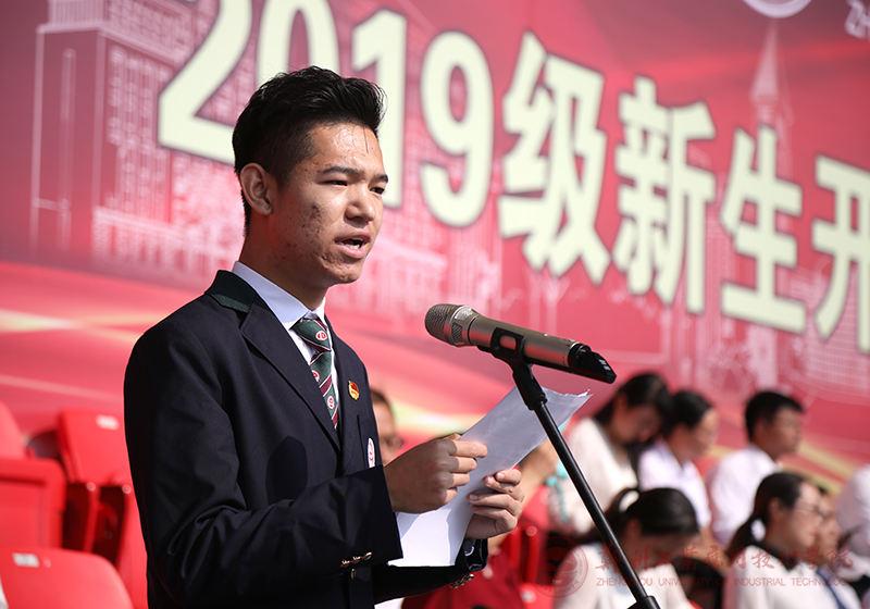图为学生代表2018级康复治疗技术专业2班秦孝龙同学发言