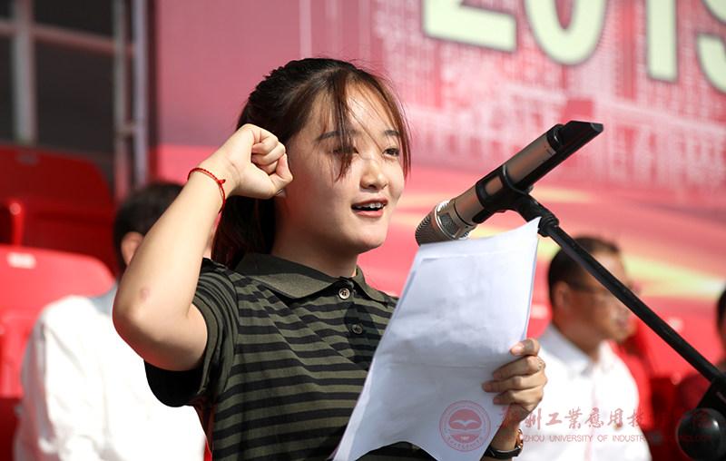 图为学生代表2019级学前教育专业李雨忻同学发言
