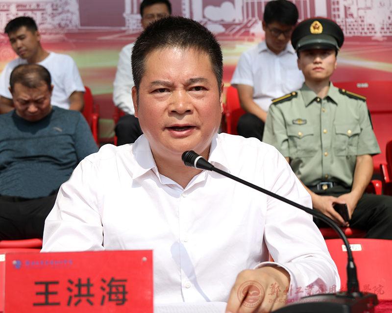校长助理王洪海副教授在军训动员讲话中在总结了近年来办学取得辉煌成绩,希望同学们在这美丽、生机勃勃的大学校园里,开启人生新征程,自觉把个人的成才梦融入中华民族伟大复兴的中国梦,以学校致力开展的学风建设相结合,以学校正在开展的“我在为谁学习”主题教育活动相结合,以学习贯彻全国教育大会精神相结合,明确学习目标,端正学习态度,发扬“求知永不言弃,创业永不言败,人生永不言悔”的郑工精神,树立“我在为谁学习”的正确观,牢固树立“四个意识”,坚定“四个自信”,力争成为社会需要的高素质人才。
