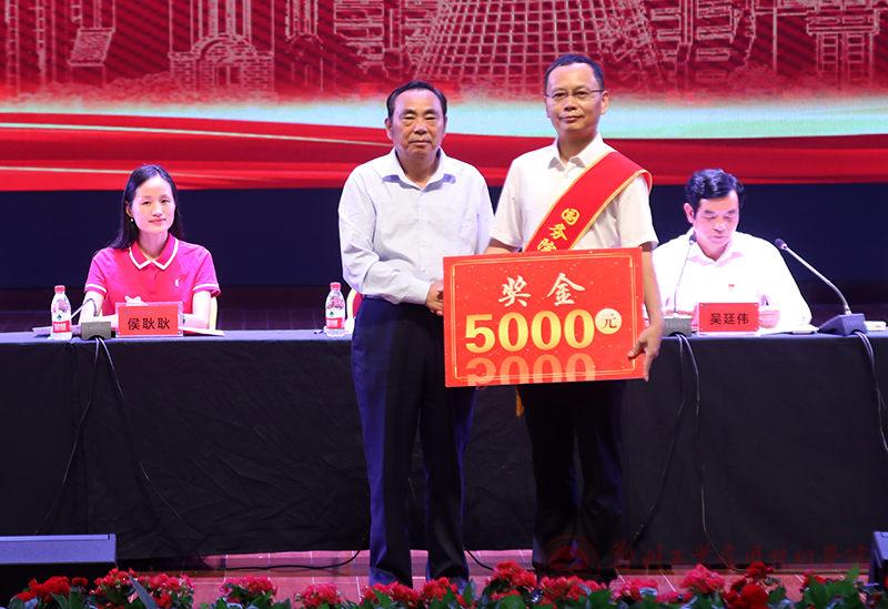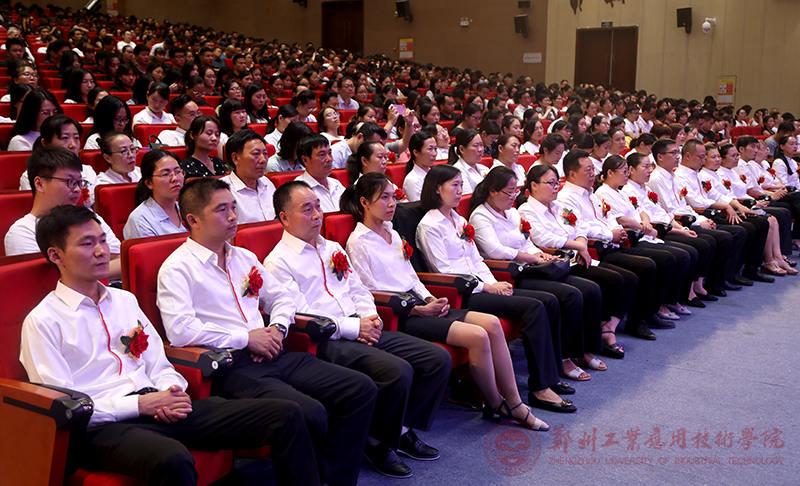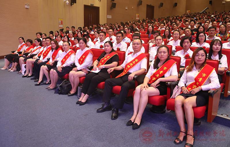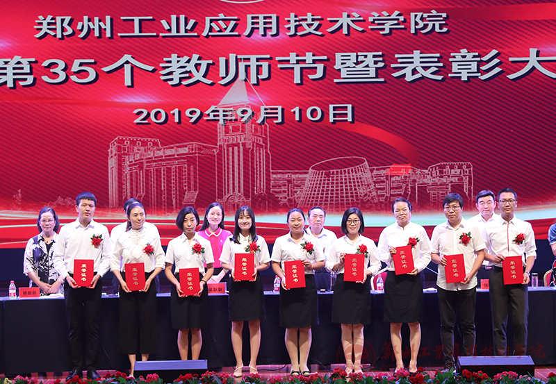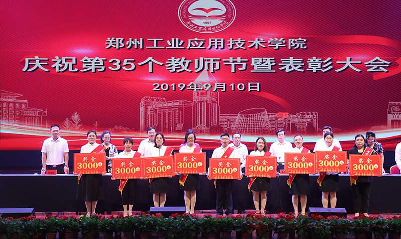 会上,全场气氛热烈而又隆重。校领导刘建、徐春华、杨新新依次宣读了相关表彰文件。在喜庆祥和的音乐声中,与会领导分别为2017年以来获得市级以上荣誉称号的教师, 2019年“郑工最美教师”,2018-2019学年优秀教师、优秀辅导员、先进教育工作者代表颁发荣誉证书,并分别给予5000元、3000元和2000元不等的奖励。