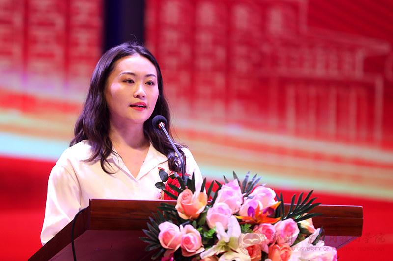图为教师代表建筑工程学院常务副院长李文霞副教授发言