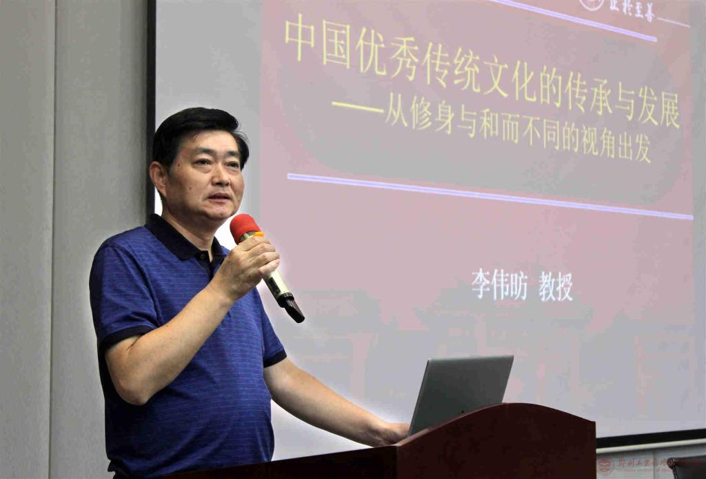 报告会上,李伟昉教授结合当下实际,从修身与和而不同的角度出发,畅谈了中国优秀传统文化的传承与发展。就中国优秀传统文化的定义、认识传统文化的视野和态度,李教授分别作了独到的阐释。