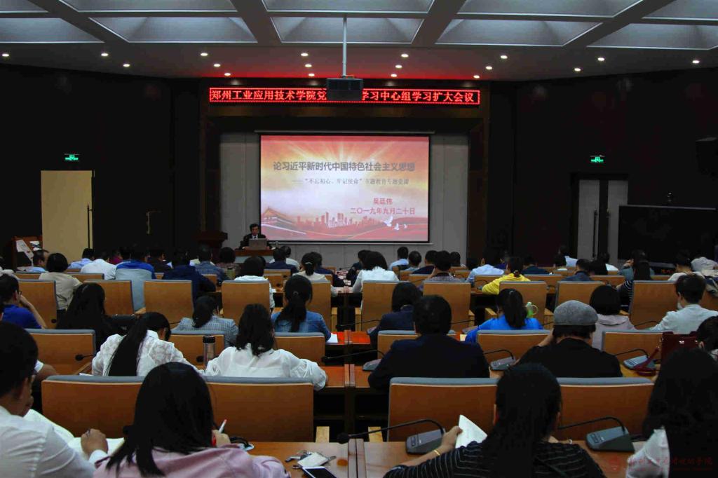 9月20日下午,我校在东校区建工楼天健厅召开了党委理论学习中心组学习扩大会议。校党委书记吴廷伟为全校党员干部和师生党员代表作了《论习近平新时代中国特色社会主义思想》专题辅导报告。