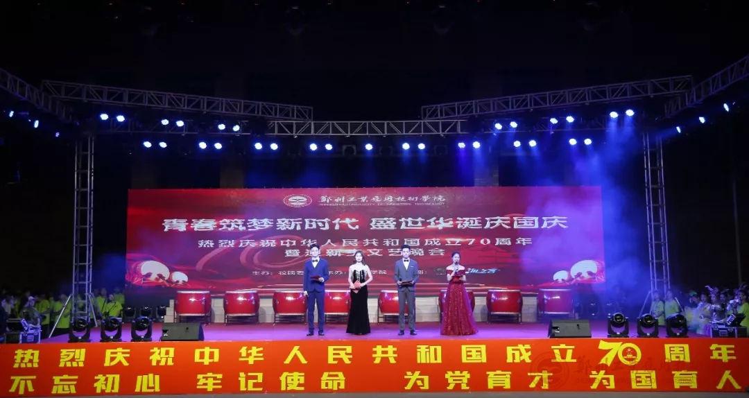 为庆祝中华人民共和国成立70周年,喜迎2019级新同学,激发全校师生爱国、爱党、爱校的热情,9月25日--26日,我校分别在东校区、西校区隆重举行2019年“青春筑梦新时代 盛世华诞庆国庆”文艺晚会。校领导姚锡远、吴廷伟、刘建、徐春华、杨新新、白海建、王洪海、桓逸衡及全校师生欢聚一堂,喜迎国庆。
