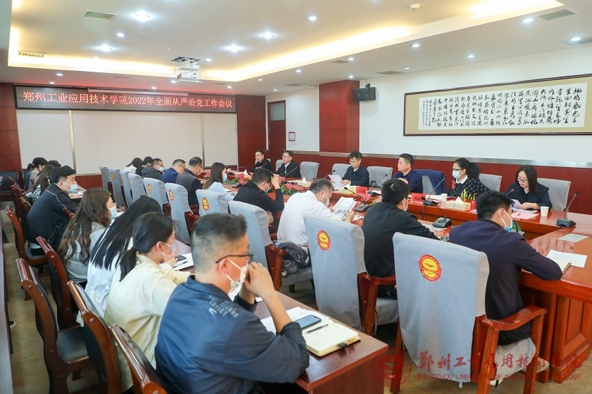 会上,党委书记孙柏梁同志在讲话中强调了此次会议的重要意义,从五个方面简要总结回顾了2021年全面从严治党所作的工作及取得的成绩,并指出了工作中存在的不足和问题,剖析了问题存在的原因。同时,孙书记对2022年全面从严治党工作提出了总体要求和主要任务。总体要求是深入学习贯彻党的十九大和十九届历次全会精神,深刻认识“两个确立”的决定性意义,坚持和加强党的全面领导,以习近平新时代中国特色社会主义思想为指导,牢固树立“四个意识”,坚定“四个自信”,做到“两个维护”,全面执行党的基本理论、基本路线、基本方略,全面执行党的教育方针、政策和规定,坚持社会主义办学方向,坚持教育必须为社会主义现代化建设服务、为人民服务,必须与生产劳动和社会实践相结合,牢记“为党育人、为国育才”初心使命,加强社会主义核心价值观培育,紧紧围绕立德树人根本任务,发挥党组织政治核心作用,以党的政治建设为统领,把抓好思想政治工作与德育工作作为首要政治责任,全面推进党的政治建设、思想建设、组织建设、作风建设、纪律建设、制度建设,以高质量党建引领学院高质量发展,努力培养德智体美劳全面发展的中国特色社会主义事业合格建设者和可靠接班人,为把郑州工业应用技术学院建设成为特色鲜明、全国知名、人民满意的应用型大学提供坚强保证。