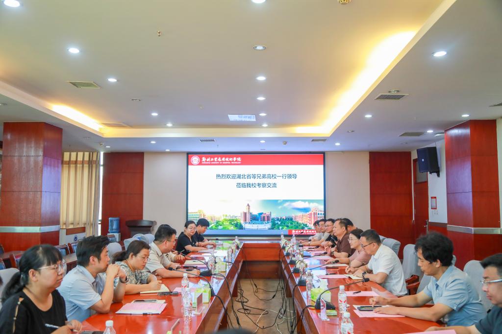 (文/朱晶花 图/余有庆)7月30日,湖北省等兄弟高校领导一行来校考察交流。副校长贾圣强,工会主席、校长助理高红艳出席座谈会,黄河科技学院办公室主任汤保梅,学校党政办公室、科研与创新工作部、学生工作部、党委宣传部、大数据信息管理中心等单位有关负责人参加。座谈会由高红艳主持。