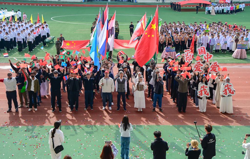 入场式结束后,现场举行庄严的升国旗仪式。全体师生肃立注目,高唱国歌,鲜艳的五星红旗在体育中心上空冉冉升起。