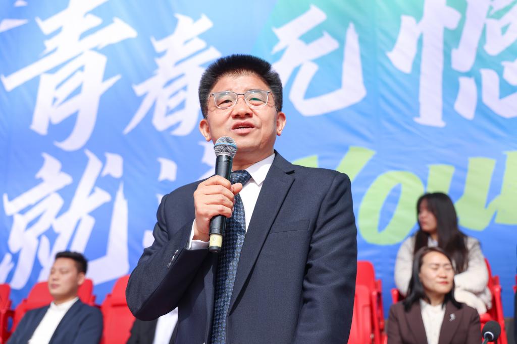校长闫兵致开幕辞并宣布郑州工业应用技术学院第十一届运动会开幕。他代表学校党政领导班子向运动会的开幕表示热烈祝贺,向全体工作人员、裁判员、志愿者致以衷心感谢,向全体运动员致以亲切问候。闫兵指出,运动会是体能与速度、力量与耐力的竞技盛会,更是一次意志与精神、团结与文明的全面检阅。学校始终坚持立德树人根本任务,把强健体魄、健全人格、锤炼意志融入人才培养全过程。他希望,全校上下以运动会为契机,深入落实“健康第一”教育理念,以健康学校建设为引领,强化五育并举,推进五育融合,促进学生身心健康、全面发展;参赛运动员将赛场上不畏困难、永不言弃的体育精神转化为勤学善思、锐意进取的学习动力与工作热情;将强健的体魄、昂扬的斗志融入专业学习、成长成才的全过程,努力成长为德智体美劳全面发展的高素质应用型人才,为学校建设高水平应用型本科高校贡献青春力量。